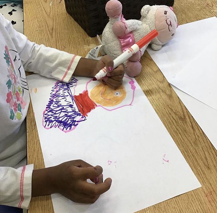 Doc McStuffins is one of the most popular children’s shows the past decade. (Fun Fact: Kay Hanley lead singer of Boston band Letters to Cleo helps compose the songs). One is the main characters on the show is Lambie. Here a student brought her stuffed Lambie to the art area and did a detailed still life style drawing of Lambie. The attention to detail and focus she showed could be correlated to her love of the character and her stuffed animal version of it.