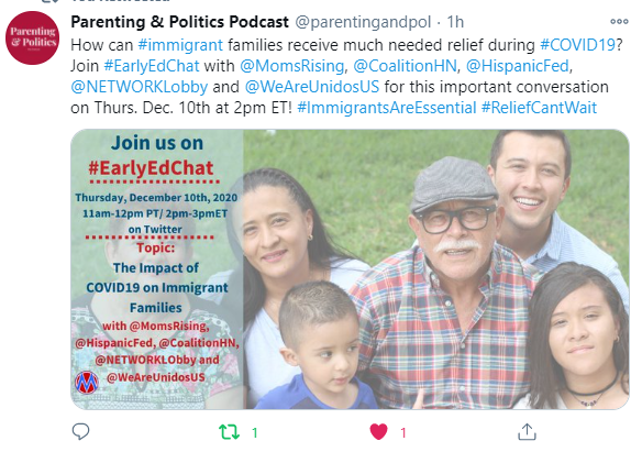 Dec 7 Twitter #EarlyEdChat happening on December 10 about “The Impact of Covid-19 on Immigrant Families”